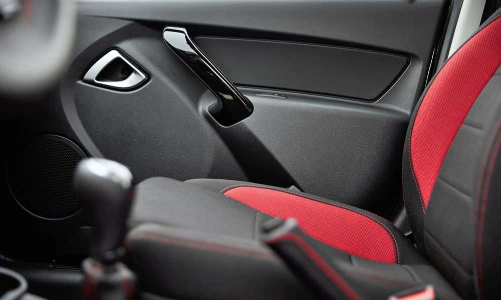 - Обивка сидений ткань. Цвет черный с красными элементами